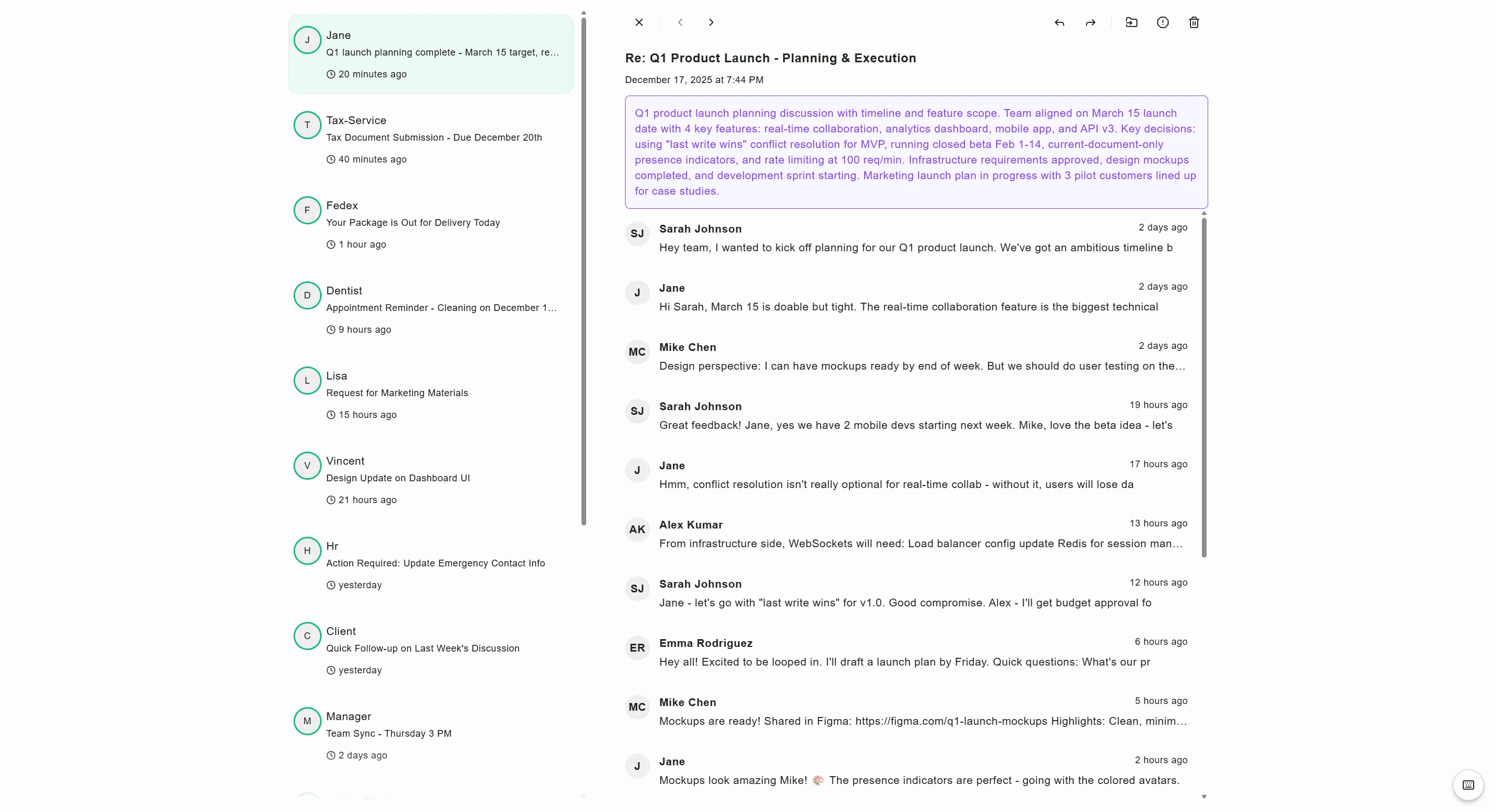 Long email threads condensed into key points instantly.