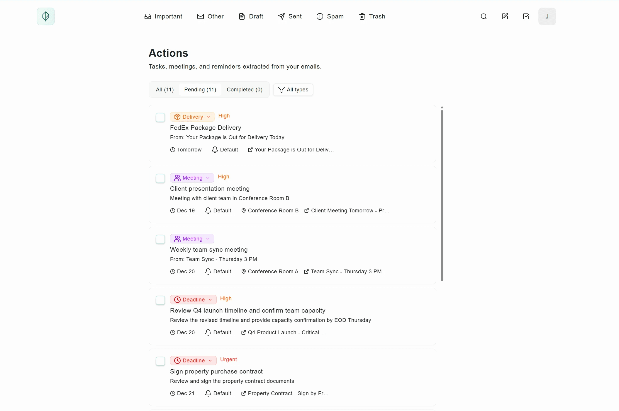 Deadlines and tasks surface automatically from your emails.